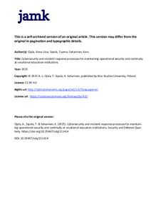 Cybersecurity and incident response processes for maintaining operational security and continuity at vocational education institutions